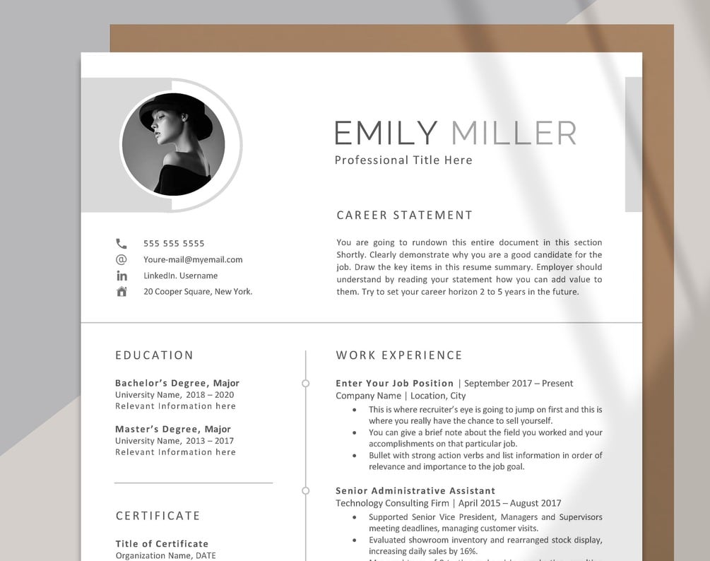 • Now the most exciting part: open Word Resume Template file and personalize it. It’s super easy to customize. All you need is a good mood and a little knowledge of using Microsoft Word.
