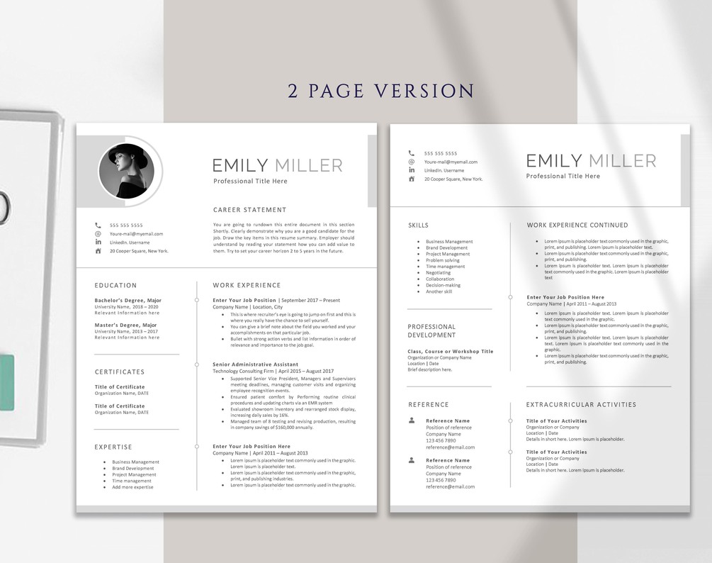 • Two Page Resume Template.