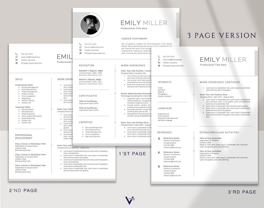 • Three Page Resume Template.