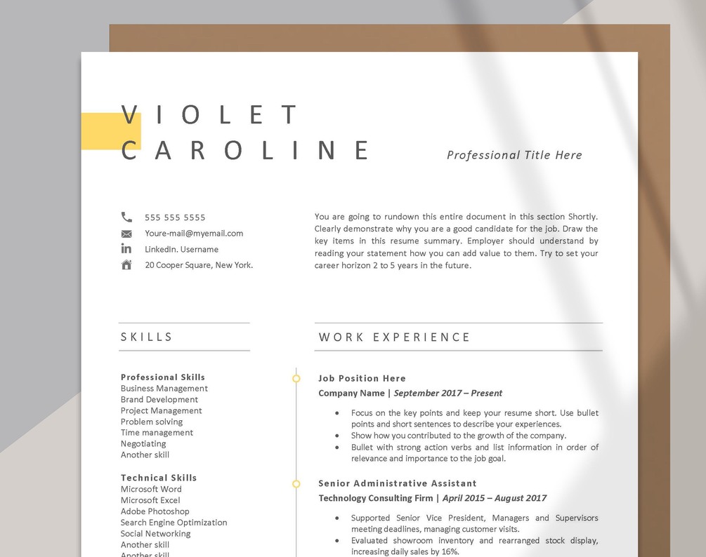 • Now the most exciting part: open Word Resume Template file and personalize it. It’s super easy to customize. All you need is a good mood and a little knowledge of using Microsoft Word.