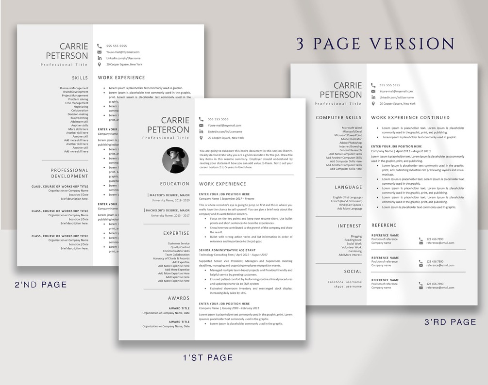 • Three Page Resume Template.
