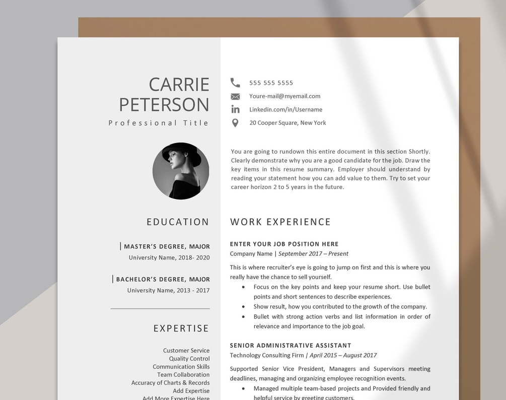 • Now the most exciting part: open Word Resume Template file and personalize it. It’s super easy to customize. All you need is a good mood and a little knowledge of using Microsoft Word.